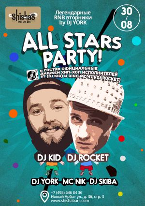 ВТОРНИК – 23 АВГУСТА 2016: Легендарные RnB Вторники by DJ YORK в Shishas Sferum Bar на Новом Арбате!