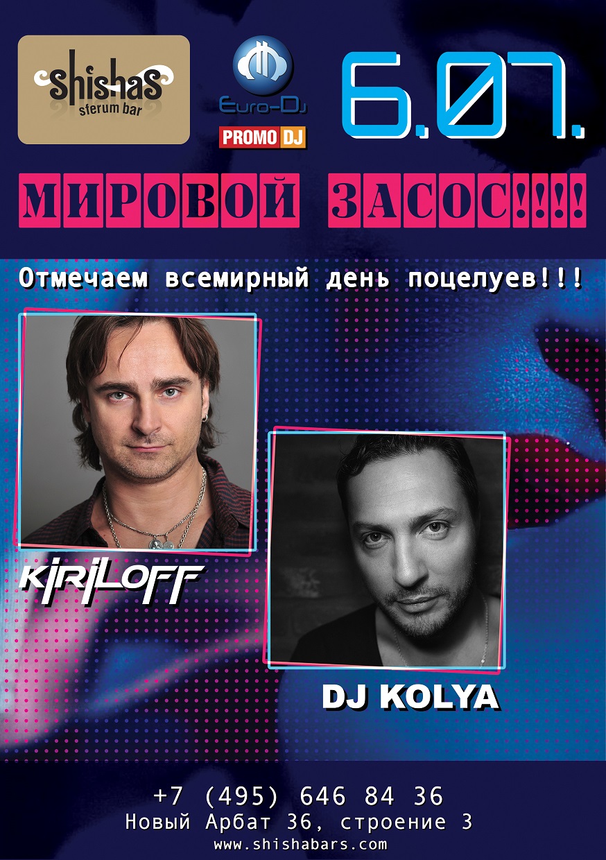 СУББОТА – 6 ИЮЛЯ 2013 – МИРОВОЙ ЗАСОС в Shishas Sferum Bar! Отмечаем всемирный день поцелуев весело и с размахом!