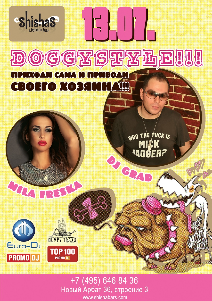 СУББОТА – 13 ИЮЛЯ 2013 – DOGGYSTYLE PARTY в Shishas Sferum Bar! Приходи сама, приводи хозяина! ;)