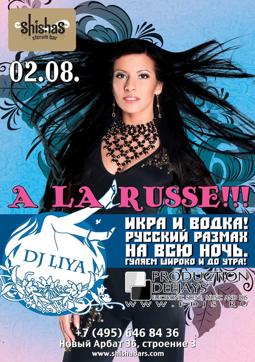 ПЯТНИЦА – 2 АВГУСТА 2013 - A La Russe!!! в Shishas Sferum Bar. Гуляем широко и до утра! Открытию сезона на Лазурном берегу посвящается.