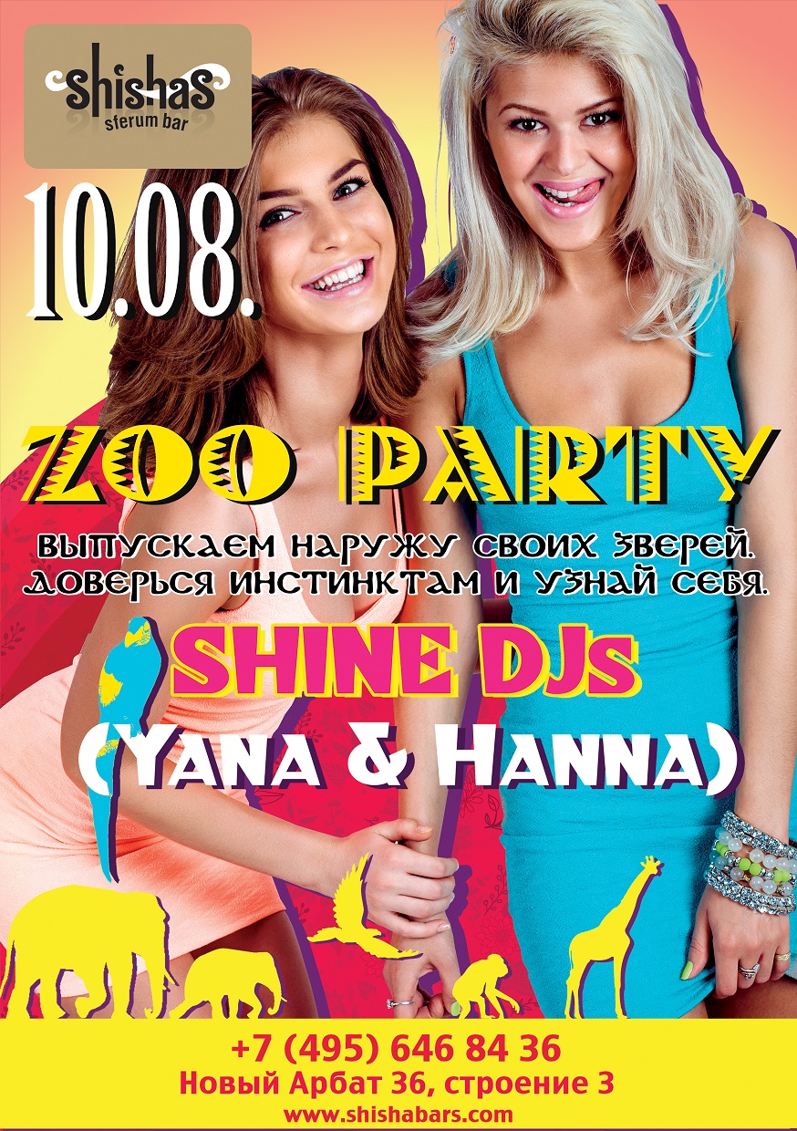 СУББОТА – 10 августа 2013 – ZOO PARTY в Shishas Sferum Bar! Выпускаем наружу своих зверей! Доверься инстинктам и узнай себя!