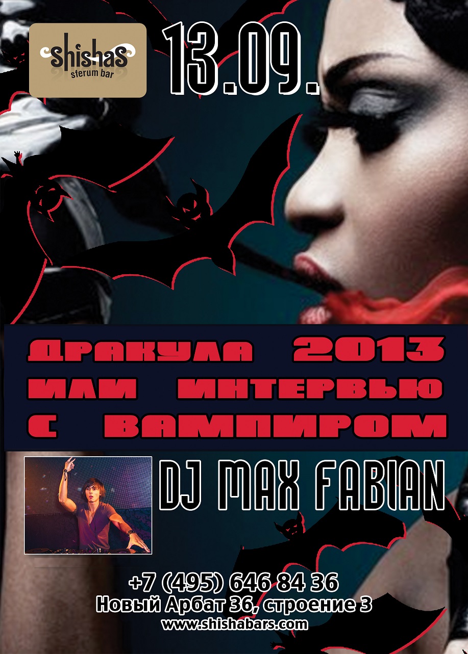 ПЯТНИЦА – 13 сентября 2013 – ДРАКУЛА 2013 или ИНТЕРВЬЮ С ВАМПИРОМ в Shishas Sferum Bar! Пятница, 13-е – мистическая дата, полная тайн и загадочных сюрпризов… ;)