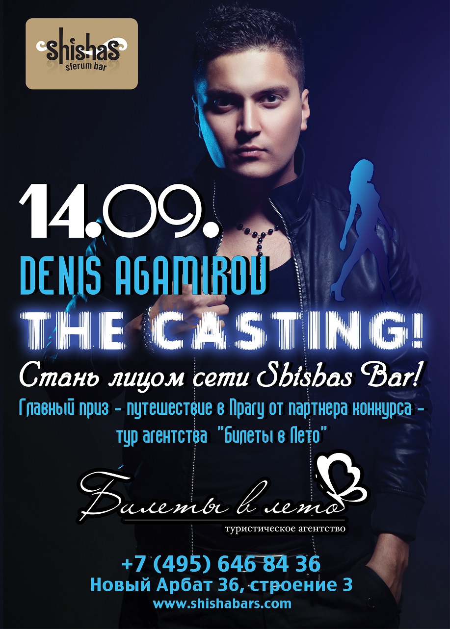 СУББОТА – 14 сентября 2013 – THE CASTING в Shishas Sferum Bar! Стать лицом Shishas Sferum Bar и выиграй путевку в Прагу от тур агентства БИЛЕТЫ В ЛЕТО! Внимание, внимание!!! Shishas Sferum Bar объявляет о грандиозном кастинге и ищет обладательниц самых привлекательных лиц и самых гибких и стройных фигур, для того, чтобы выбрать одну – единственную и неповторимую, которая станет лицом Shishas Bar’а! Стать лицом Shishas Sferum Bar мечтают многие и шанс есть у каждой! Однако одной настойчивости и желания будет мало! Вам придется основательно поработать над своей внешностью и решиться на неординарные шаги для того, чтобы иметь честь представлять наш бар. Стань звездой Shishas Bar и убедись сама, какими темпами будут расти твои рейтинги! Тебя ждут популярность, блеск ночной жизни, внимание самых достойных мужчин – не об этом ли ты мечтала в последнее время? Ну а помогут нам провести кастинг, как следует, вкусные и раскрепощающие коктейли, ароматные кальяны и и дружеская обстановка – никакого стеснения, только одобрение! Вниманию молодых людей: в эту ночь ожидается самая высокая концентрация красивых девушек на один метр танцпола! Девушки, проявите себя и получите главную роль – станьте лицом Shishas Sferum Bar! Условия предварительного отбора: для участия в кастинге: Размести свое фото в группе http://vk.com/shishassferumbar или https://www.facebook.com/ShishasSferumBar Участницы, фото которых наберет большее количество голосов, будут приглашены на финальный кастинг. Также приоритет участия будет отдаватся участницам, чьи фото сделаны в интерьерах Shishas! Победительнице достанется ПУТЕВКА В ПРАГУ, а девушкам, занявшим 2 и 3 место – сертификаты, дающие скидку 3 000 руб и 5 000 руб для путешествия в любую точку мира от туристического агенства БИЛЕТЫ В ЛЕТО! Non-stop DJ set от резидентов: 18:00-06:00 Special guest: DJ AGAMIROV Sexy Go-Go Ladies: 00:00-04:00!!! *********************************************************************** При заказе стола от 8-ми человек – бутылка итальянского шампанского В ПОДАРОК! День Рождения? Дарим скидку 20% на ВЕСЬ счет! :) Отметь День Рождение в Shishas Sferum Bar: получи скидку 20% на весь счет!