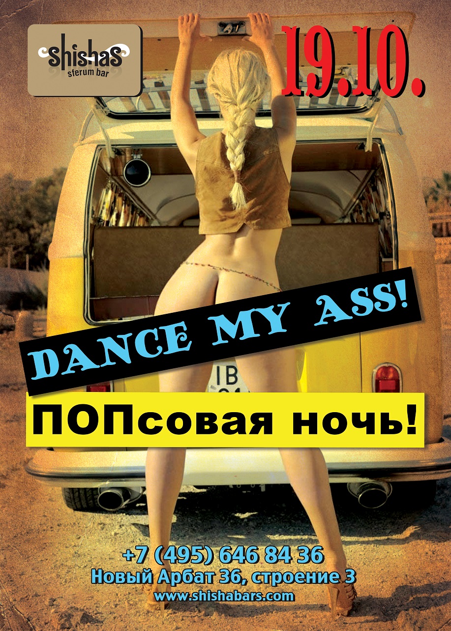 СУББОТА – 19 ОКТЯБРЯ 2013 – DANCE MY ASS в Shishas Sferum Bar! ПОПсовая ночь! Выбери самую сексуальную женскую попку столицы!