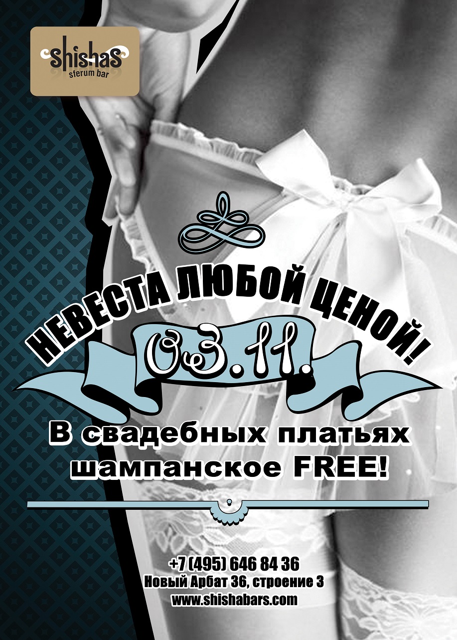 ВОСКРЕСЕНЬЕ – 3 НОЯБРЯ 2013 – НЕВЕСТА ЛЮБОЙ ЦЕНОЙ в Shishas Sferum Bar! Наши девушки – бесценны!