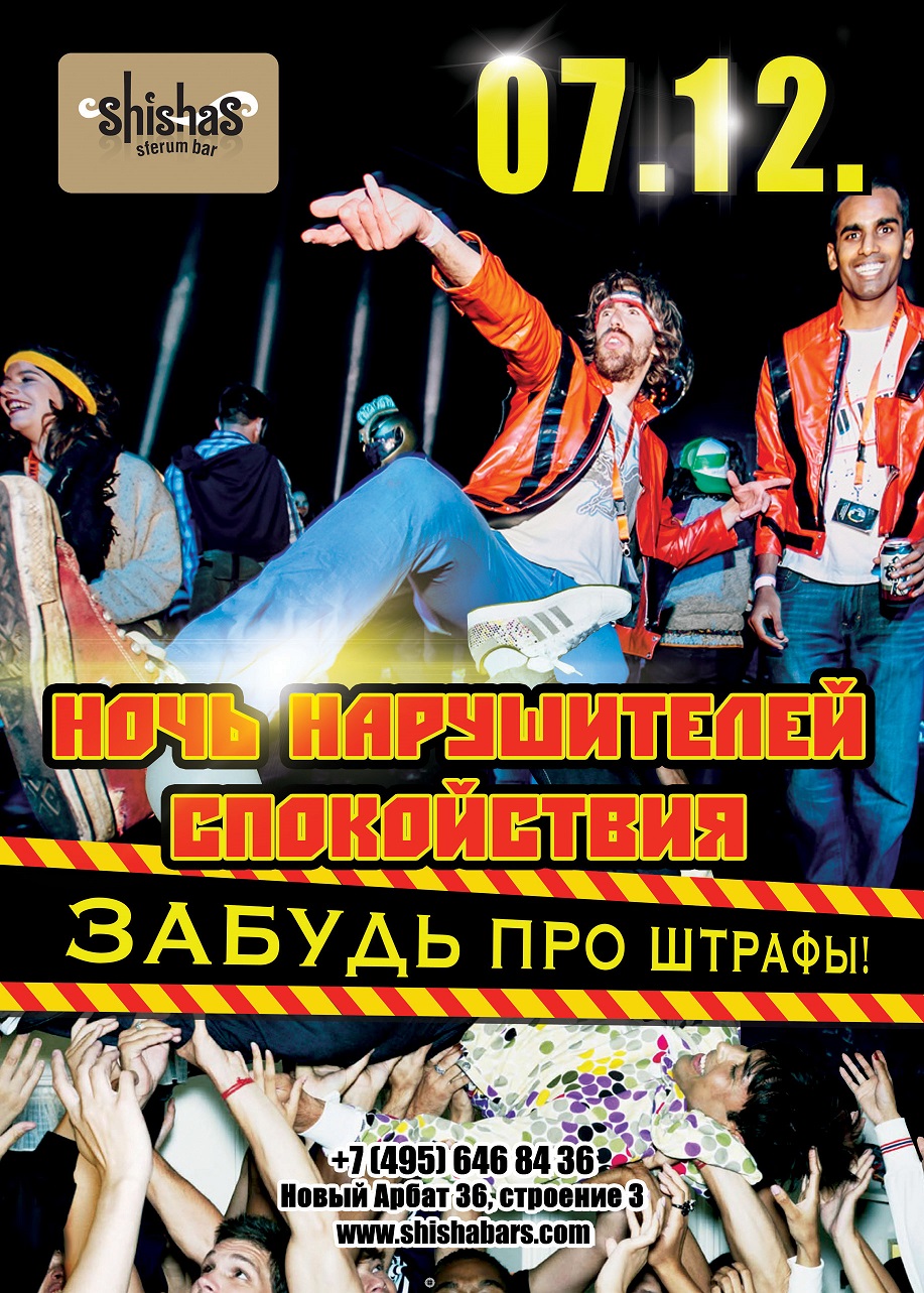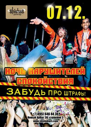 СУББОТА – 7 ДЕКАБРЯ 2013 – НОЧЬ НАРУШИТЕЛЕЙ СПОКОЙСТВИЯ в Shishas Sferum Bar! Забудь про штрафы!