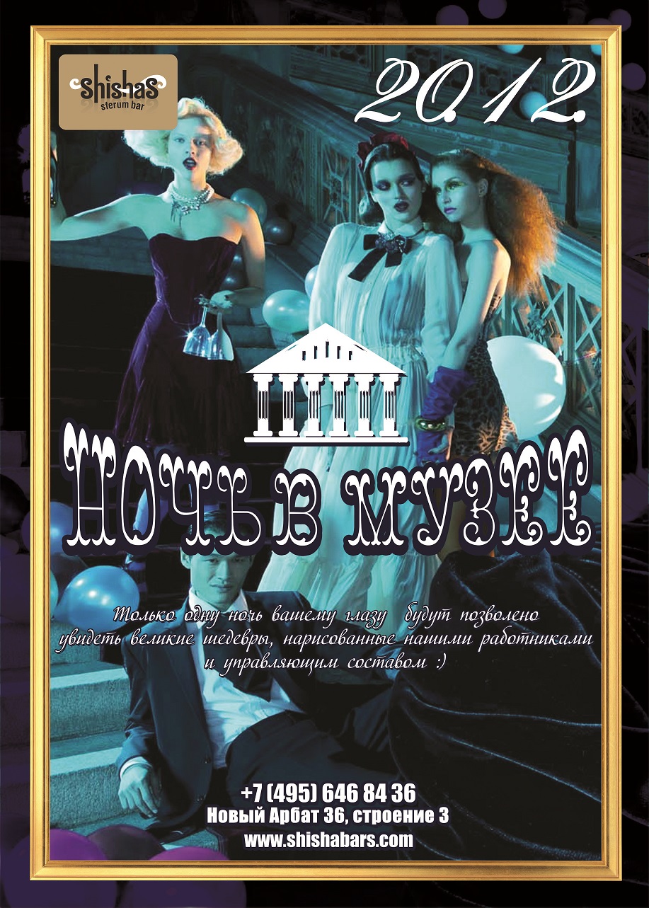 ПЯТНИЦА – 20 ДЕКАБРЯ 2013 – НОЧЬ В МУЗЕЕ в Shishas Sferum Bar! Только одну ночь Вашему глазу будут позволено увидеть великие шедевры, нарисованные нашими работниками и управляющим составом!