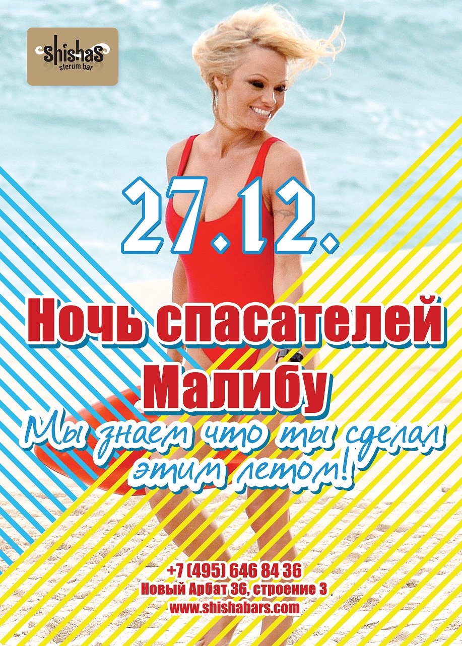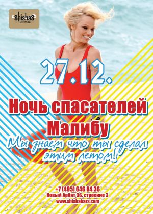 ПЯТНИЦА – 27 ДЕКАБРЯ 2013 – НОЧЬ СПАСАТЕЛЕЙ МАЛИБУ в Shishas Sferum Bar! Мы знаем, что ты делал этим летом!