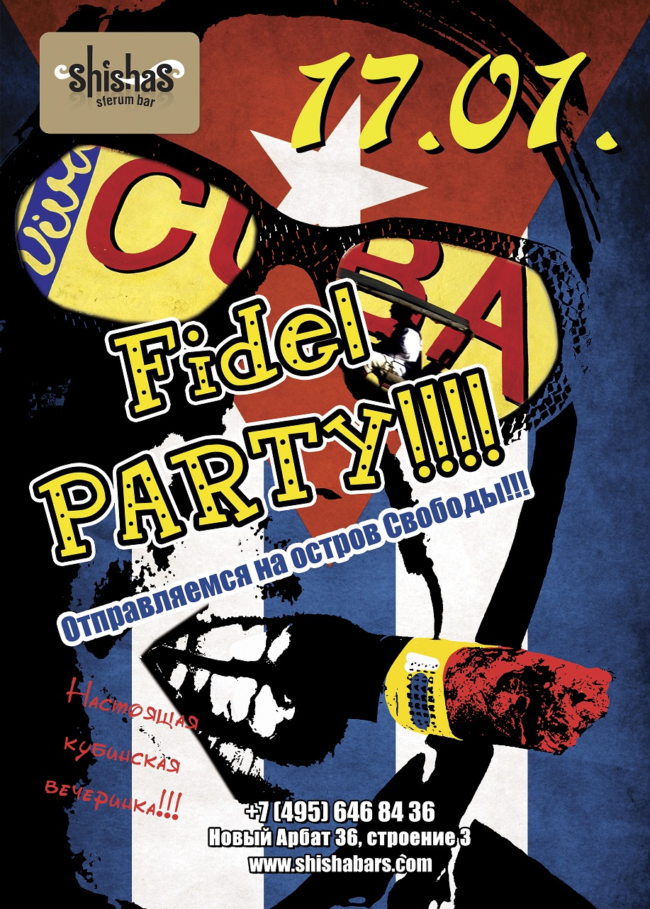 ПЯТНИЦА – 17 января 2014 – Фидель Party в Shishas Sferum Bar! Отправляемся на остров Свободы! Настоящая кубинская вечеринка!