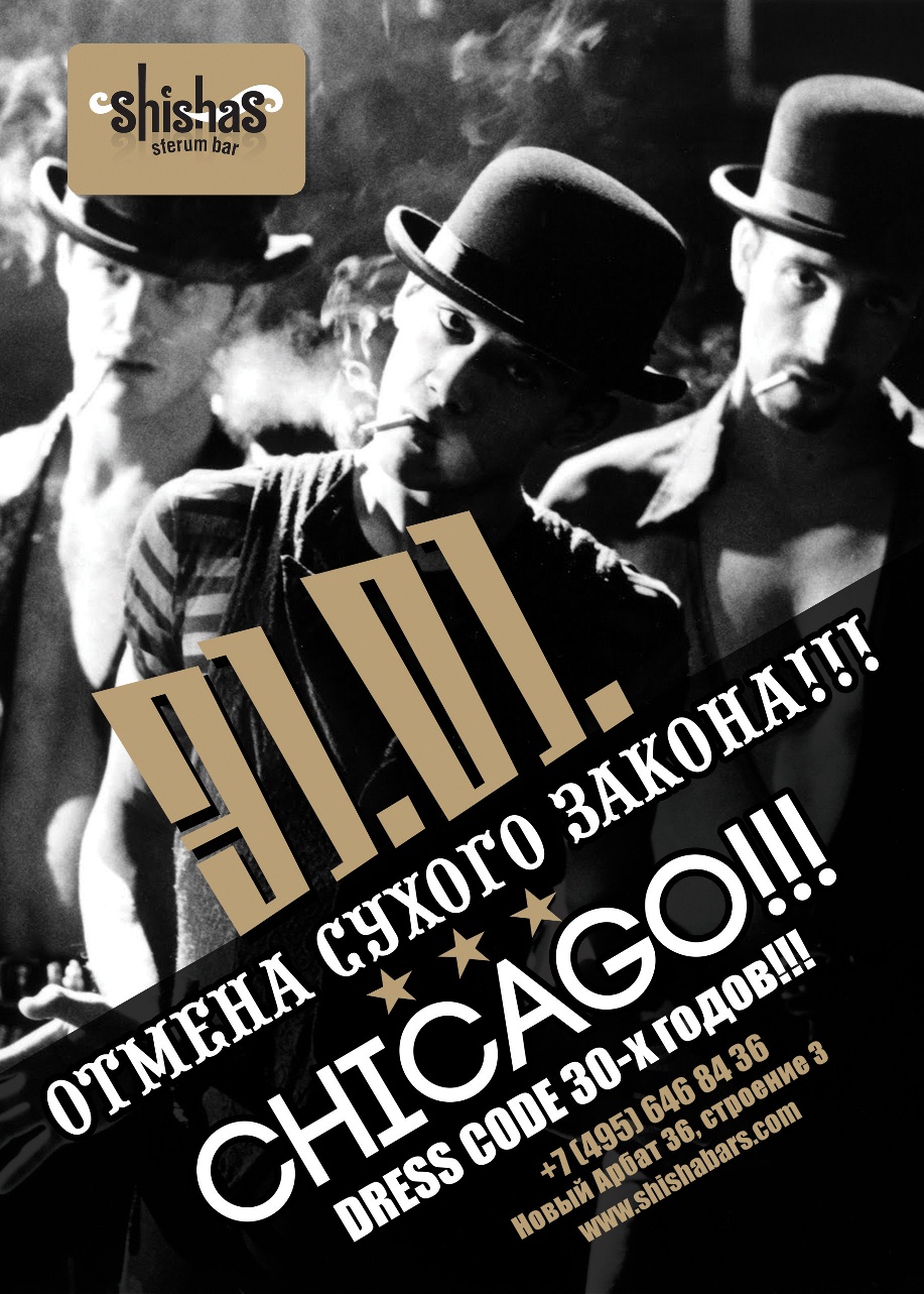 ПЯТНИЦА – 31 ЯНВАРЯ 2014 – ОТМЕНА СУХОГО ЗАКОНА в Shishas Sferum Bar! CHICAGO party!