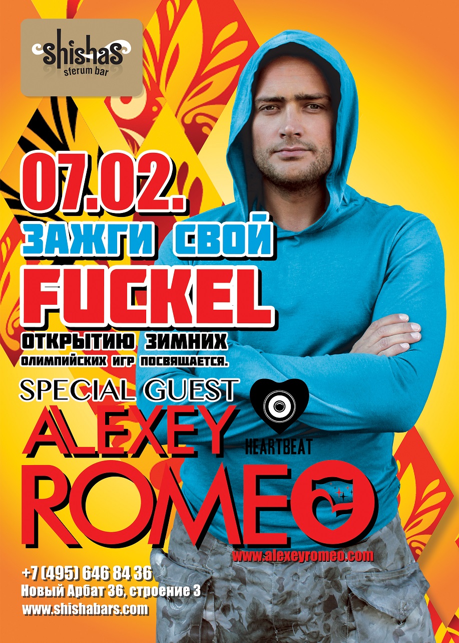 ПЯТНИЦА – 7 ФЕВРАЛЯ 2014 – Зажги свой FUCKel в Shishas Sferum Bar! Открытию Зимних Олимпийских игр посвящается! Special Guest: DJ Romeo (CПб)!