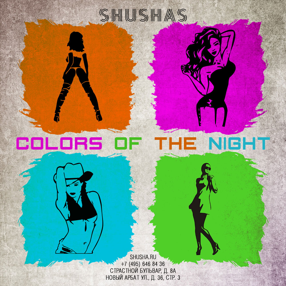 СУББОТА: Colors of the night в SHUSHAS на Новом Арбате. Яркая ночь – для ярких людей! Серой осенью просто необходимо добавить в жизнь антидепрессантов – побольше света и цвета. Переливы цветных огней – символ ночной жизни большого города с его оригинальными обитателями, а цветным становится все: клубная одежда, обувь, макияж, интерьеры и аксессуары. Сегодня в ресто-баре, караоке и ночном клубе SHUSHAS на Новом Арбате незаурядные и яркие Гости – главные герои вечеринки! Есть шанс набраться смелости и кардинально преобразиться. Друзья, пусть жизнь станет хоть чуточку ярче, а эмоции насыщеннее. Раскрасим осенний вечер в самую жизнерадостную палитру, поднимем себе настроение отличными и разноцветными коктейлями. #АтмосфераСферы Ужинаем и поем в караоке с 17:00 | Танцуем после 23:00 | Отдыхаем до 5 утра Скидки и акции: