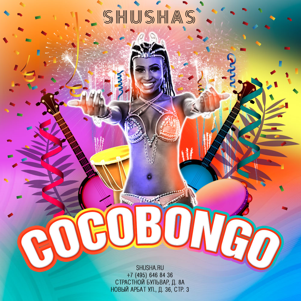 СУББОТА: Cocobongo в SHUSHAS на Новом Арбате! Разогреем до предела эту ночь жаркими танцами! Погрузись в яркую атмосферу Южной Америки и насладись бразильским карнавалом в самом сердце столицы. Сегодня в сети ресто-бара, караоке и ночного клуба SHUSHAS на Новом Арбате закипят настоящие страсти – ведь, это вечеринка в стиле latino! Танцуем под ритмы дерзкой самбы, прочувствуем страстное танго, окунёмся в романтику румбы. #АтмосфераСферы Ужинаем и поем в караоке с 17:00 | Танцуем после 23:00 | Отдыхаем до 5 утра Скидки и акции:
