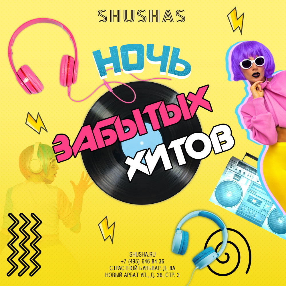 ПЯТНИЦА: Ночь забытых хитов в SHUSHAS на Новом Арбате! Танцуем до потери пульса! Как быстро летит время. Не успеешь оглянуться, как любимый танцевальный хит превращается в подзабытый трек, который включают на посиделках только после пятой рюмки, а классные песни плавно перекочевывают в категорию «Диско 90-ых»! Но сегодня нам никто не помешает слушать их нон-стоп. Сегодня мы в ресто-баре, караоке и ночном клубе SHUSHAS на Новом Арбате сдуваем пыль с пластинок и CD, чтобы вернуть воспоминания клубной юности и мелодии Ваших любимых, но неожиданно забытых хитов. Вспомним первую любовь и жаркие свидания; освежим в памяти невероятные танцевальные пати и поездки к морю, почувствуем привкус ностальгии. #АтмосфераСферы Ужинаем и поем в караоке с 17:00 | Танцуем после 23:00 | Отдыхаем до 5 утра Скидки и акции:
