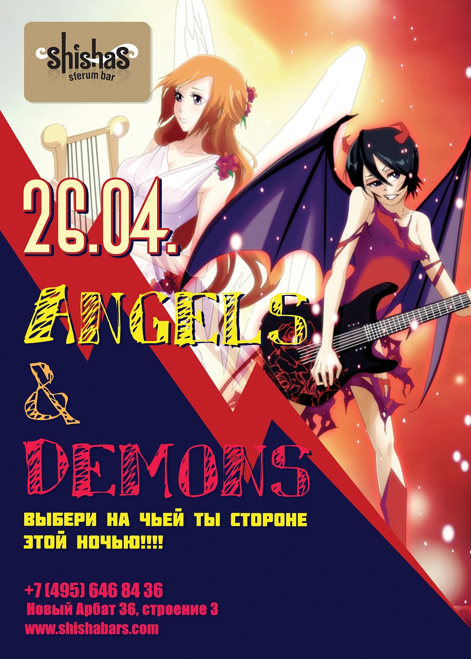 СУББОТА – 26 АПРЕЛЯ 2014 – Ангелы и Демоны в Shishas Sferum Bar! Выбери, на чьей ТЫ стороне этой ночью!