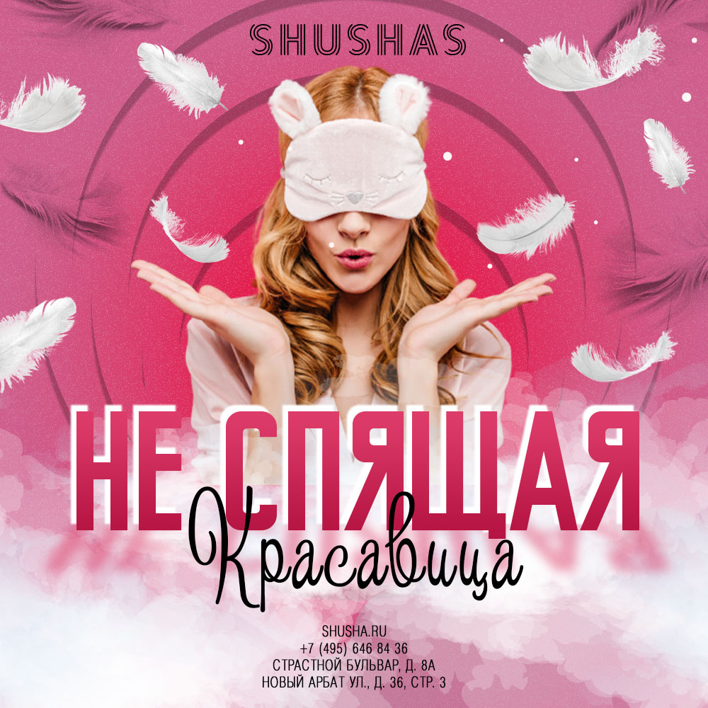ПЯТНИЦА: Не спящая красавица в SHUSHAS на Новом Арбате! Бой подушками и сексапильные красотки в пеньюарах! Сегодня у нас расхочет спать даже самая сонная красавица, а зевать от скуки не придется никому. Вас ждет самый настоящий и беспощадный бой подушками, и только что очнувшиеся ото сна красавицы в самых сексапильных нарядах – пижамах, пикантных сорочках и одежде для сна. А вместо утреннего кофе – бодрящий алкоголь. Друзья, так что, если Вам постоянно хочется спать, и не только в спальне, но и за рулем или на работе – вперед, в сеть ресто-бара, караоке и ночного клуба SHUSHAS на Новом Арбате. Мы мигом вылечим Вас от сонного состояния, будете как новенькие! #АтмосфераСферы Ужинаем и поем в караоке с 17:00 | Танцуем после 23:00 | Отдыхаем до 5 утра Скидки и акции: