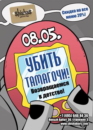 ЧЕТВЕРГ – 8 МАЯ 2014 – УБИТЬ ТАМАГОЧИ в Shishas Sferum Bar! Возвращаемся в детство! ВСЕ ПРАЗДНИКИ В СЕТИ SHISHAS BAR – 20% СКИДКА НА СЧЕТ!