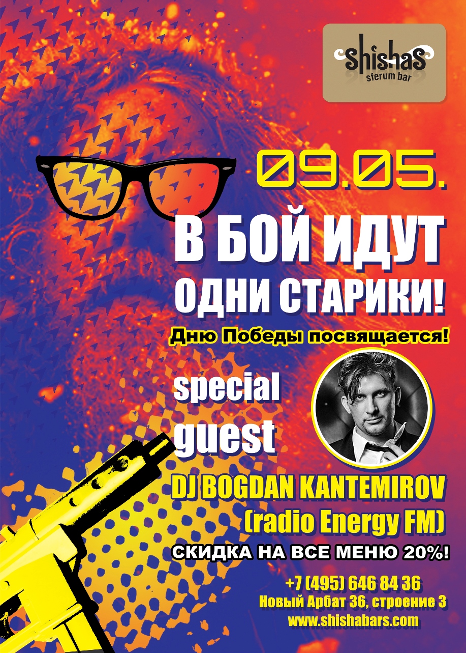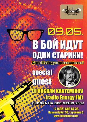 ПЯТНИЦА – 9 МАЯ 2014 – В БОЙ ИДУТ ОДНИ СТАРИКИ в Shishas Sferum Bar! Дню Великой Победы посвящается! ВСЕ ПРАЗДНИКИ В СЕТИ SHISHAS BAR – 20% СКИДКА НА СЧЕТ!