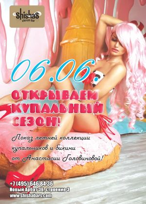 ПЯТНИЦА – 6 ИЮНЯ 2014 – ВСЕ НАРУЖУ в Shishas Sferum Bar! ОТКРЫВАЕМ КУПАЛЬНЫЙ СЕЗОН! Показ летней коллекции купальников и бикини от Анастасии Головиновой!