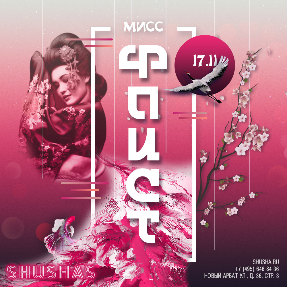 Мисс ФПИСТ в SHUSHAS на Новом Арбате! Японская ночь с волшебным ароматом сакуры и с таинственными жрицами!
