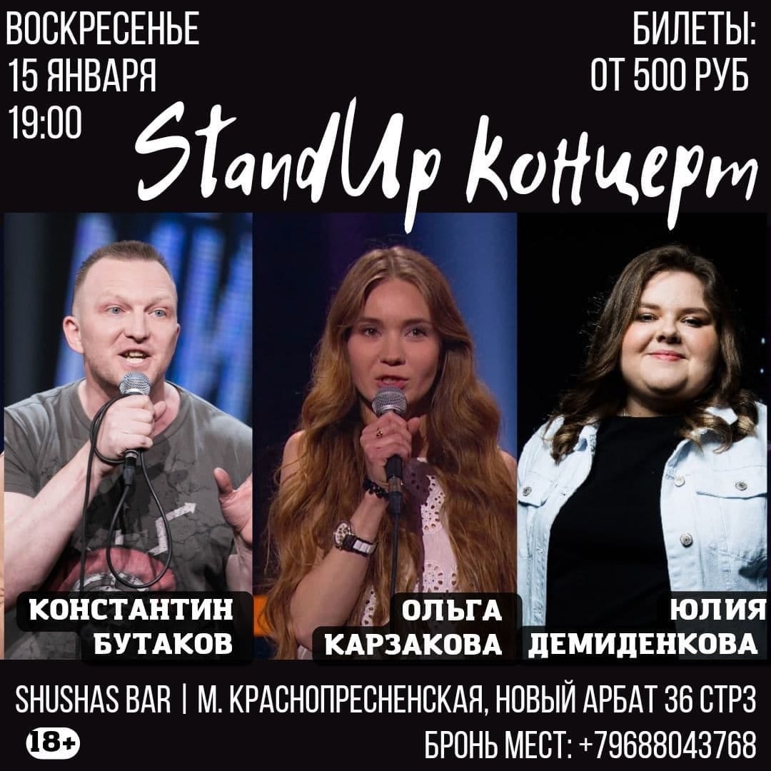 ВОСКРЕСЕНЬЕ: Концерт StandUp BEST и VINYL SUNDAYS в SHUSHAS на Новом Арбате!