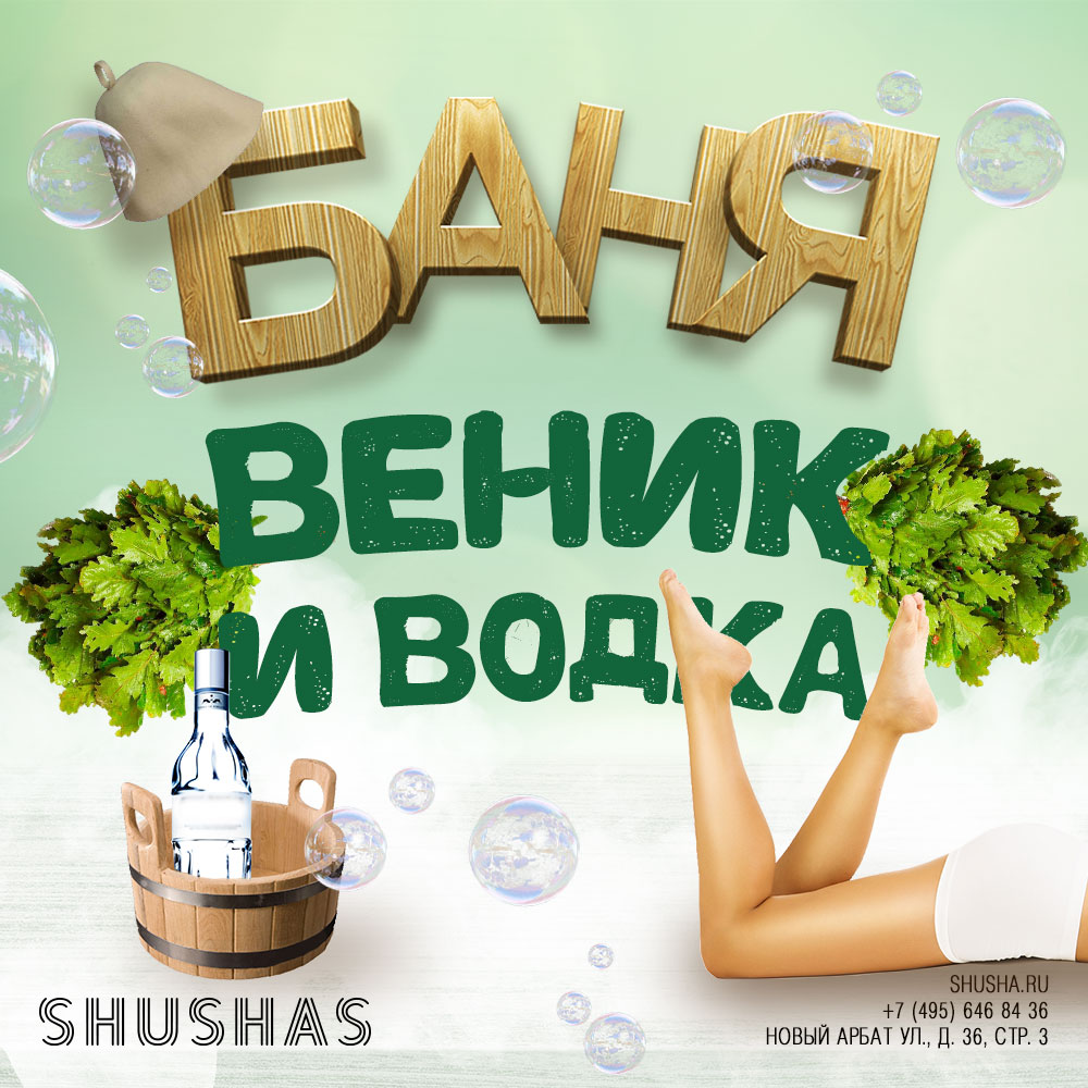 ПЯТНИЦА: Квиз и Баня, веники и водка в SHUSHAS на Новом Арбате! Лучшая традиция!