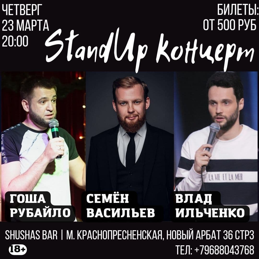 Концерт StandUp BEST и СНОГСШИБАТЕЛЬНЫЙ ЧЕТВЕРГ в SHUSHAS на Новом Арбате! Для всех, кто не дотерпел до пятницы!