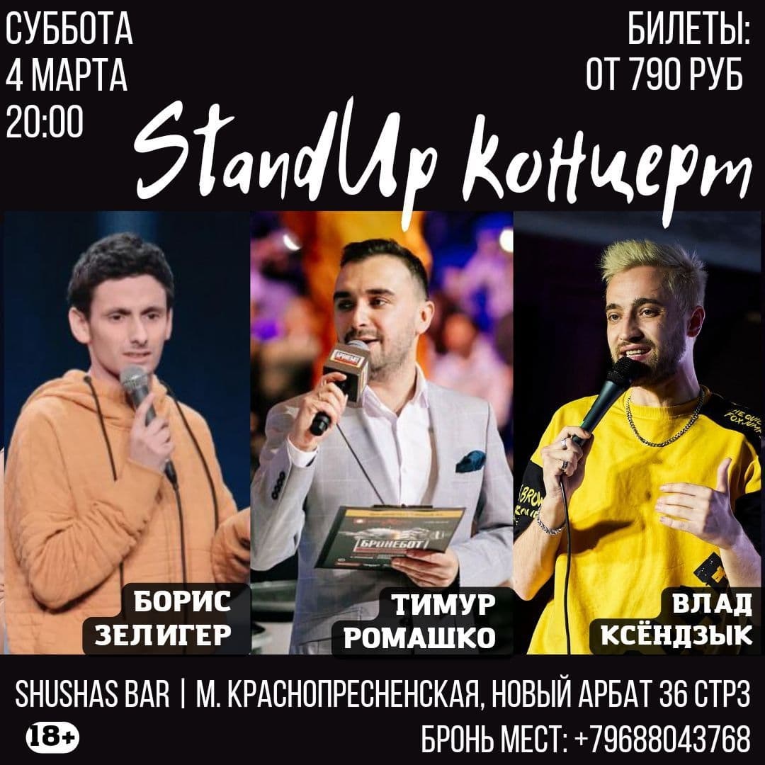 Начинаем вечер со стендапа! Нет ничего лучше, чем порция отличного настроения, новые эмоции и добрые комические standup ситуации! Вход: платный. Концерт StandUp BEST в Москве - только лучший и уже проверенный материал от именитых участников многочисленных телевизионных и YouTube проектов. Сбор: с 19:00, начало стэндапа: 20:00.