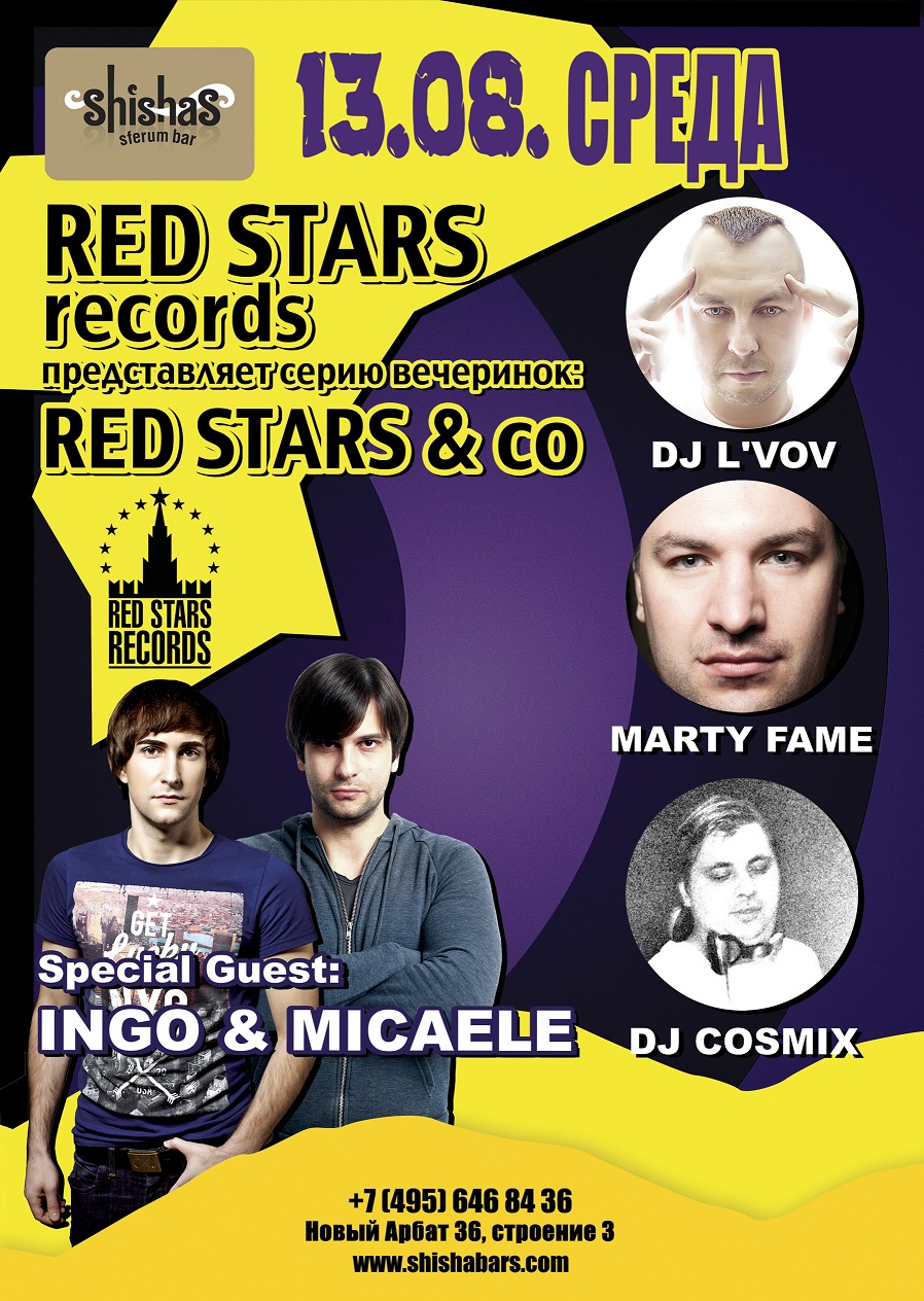 13 августа 2014 (СРЕДА) – Red Stars On Air в Shishas Sferum Bar! Welcome to HOUSE-WEDNESDAYS! Открытие вечеринок самого авторитетного российского мультиформатного рекорд-лейбла России!