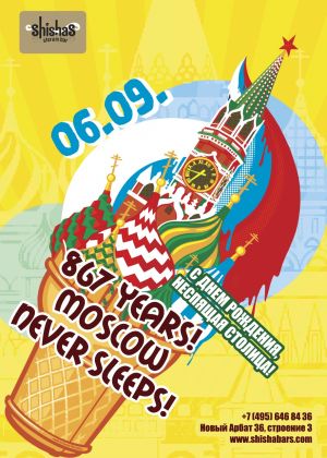 СУББОТА – 6 СЕНТЯБРЯ 2014 – 867 YEARS! MOSCOW NEVER SLEEPS! в Shishas Sferum Bar! С ДНЕМ РОЖДЕНИЯ, НЕСПЯЩАЯ СТОЛИЦА!