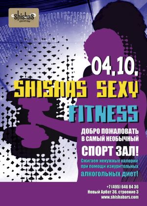 СУББОТА – 4 ОКТЯБРЯ 2014 – SHISHAS SEXY FITNESS в Shishas Sferum Bar! Добро пожаловать в самый необычный спортзал! Фитнес – это не только полезно для фигуры и здоровья, но еще модно и сексуально: признайся, что ты тоже ходишь в качалку, чтобы полюбоваться совершенными и не очень женскими формами? Поэтому нет повода, друзья, не отметить с размахом, подобным размаху точеных ног изящных спортсменок, день фитнеса по-шишински! Да здравствует сексуальность, грация и красота! Сегодня в стенах Shishas Sferum Bar откроется весьма оригинальный фитнес-зал. Станешь ли ты тренером или учеником – выбирать тебе. У нас полно профессиональных инструкторов: обучат, чему только пожелаешь! Все доступные тренажеры – за барной стойкой, тренируйся сколько сможешь! А если тебе все еще не нравится твой партнер – позанимайся еще, впереди три подхода по сто грамм! Долой ненужные калории, да здравствуют нужные и интересные знакомства! :) • Покажи свою карту из любого фитнес клуба – получи коктейль от бармена за спортивный подход! Non-stop DJ set от резидентов: 18:00-06:00 Happy Hours: Отдыхаем до 6 утра! |