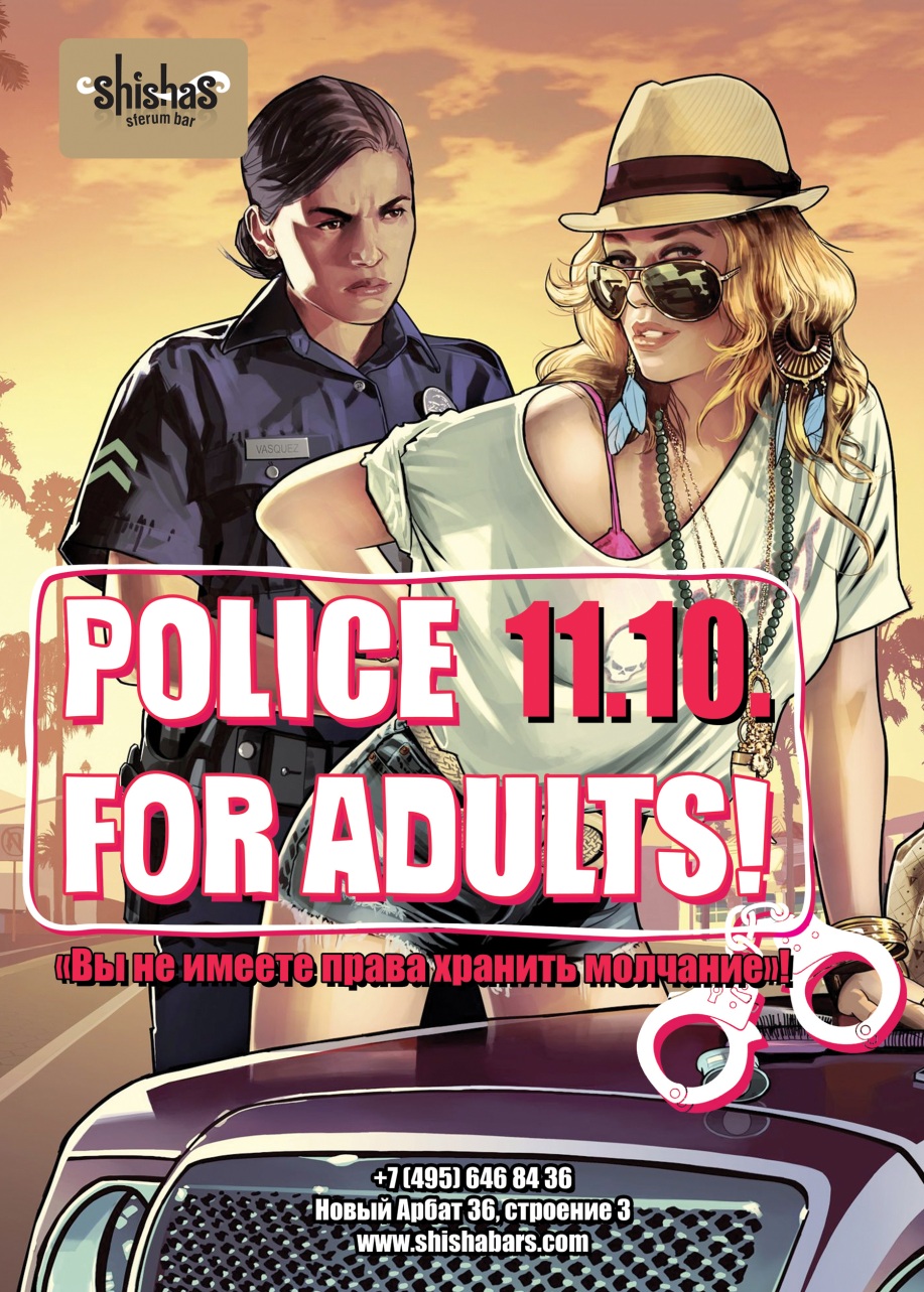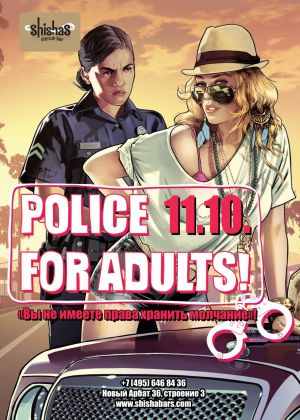 СУББОТА – 11 ОКТЯБРЯ 2014 – POLICE FOR ADULTS в Shishas Sferum Bar! Продолжаем играть в ролевые игры по-взрослому! Весело, сексуально, ярко, на грани! Согласитесь, что нет в мире ничего более волнующего, чем ролевые игры!? Увы, в жизни не так часто к нам в постель приходят очаровательные полисменши и мужественные полицейские. Только вот сейчас не надо никаких ассоциаций с отечественными ментами и гадким обезьянником – только мускулистые и стройные служащие правопорядка в отличной форме, одетые с иголочки, как в голливудском кино! Хотите заполучить себе таких сотрудников? Нет проблем! Сегодня их в избытке в Shishas Sferum Bar на Новом Арбате! Давайте воспользуемся моментом, попьем, не нарушая закона, и подвигаемся – так, как нам нравится! Поддерживаем наших ди-джеев, танцуем в общем ритме, не стесняемся в движениях, обнажая самые прекрасные части тела, заставляя своих спутников изрядно покраснеть, – да, здесь полиция, но закон на нашей стороне! Танцуем, смеемся и гуляем до утра, но помним: игра уже началась, и Вы не имеете права «хранить молчание»! На языке Shishas Sferum Bar это означает: бездействие, отказ от напитков и танцев – это нарушение нашего закона! • Всем Гостям в полицейской форме – коктейль в подарок за смелость и дерзость! Non-stop DJ set от резидентов: 18:00-06:00 Happy Hours: Отдыхаем до 6 утра! АДРЕС: Москва, м. Краснопресненская, Новый Арбат ул., д. 36, стр. 3 (Торговый центр Сфера) |