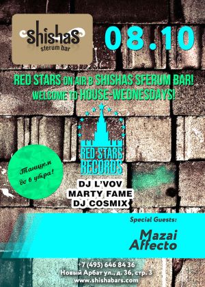 СРЕДА: Red Stars On Air в Shishas Sferum Bar! Welcome to HOUSE-WEDNESDAYS! SPECIAL GUEST: Mazai Affecto