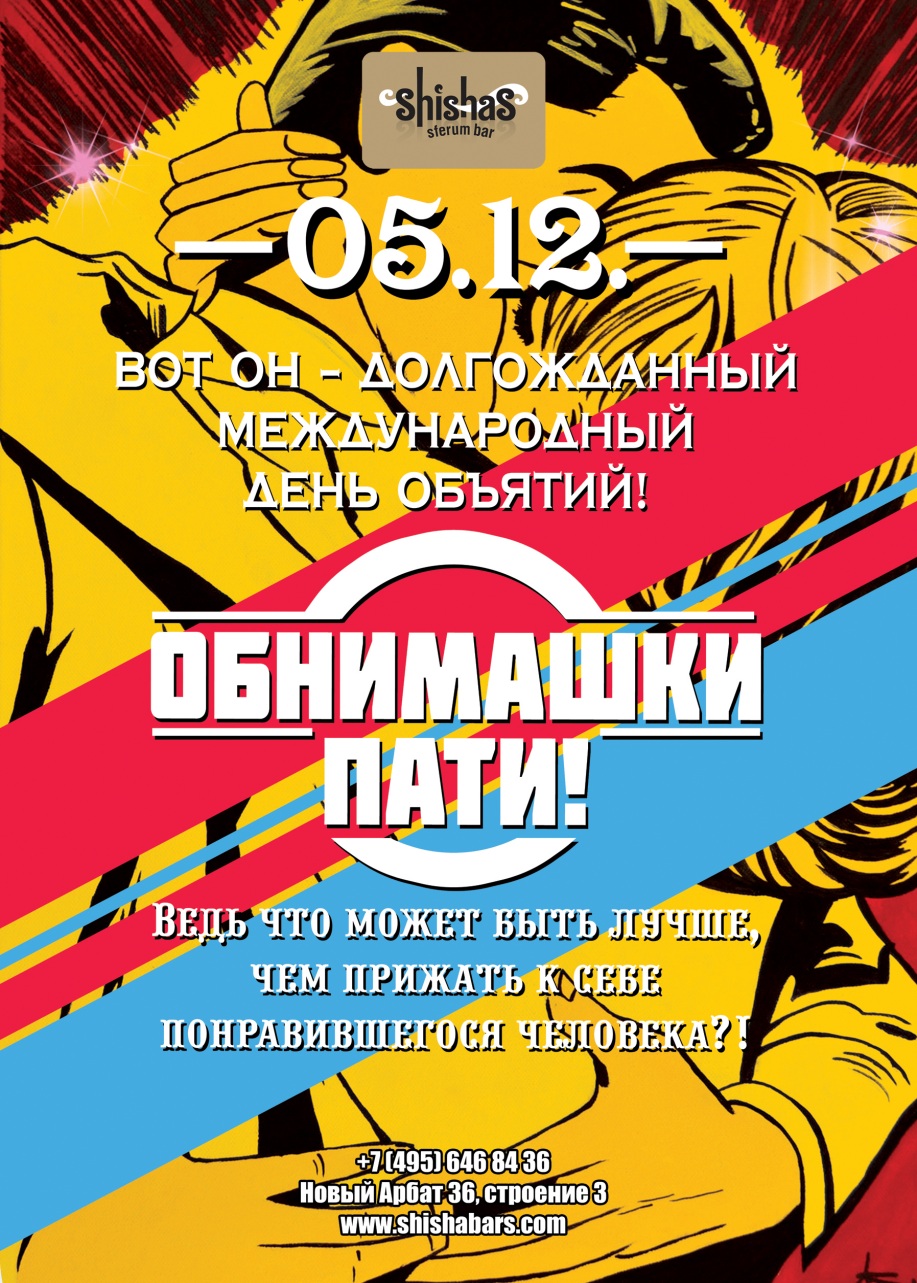 ПЯТНИЦА – 5 ДЕКАБРЯ 2014 – ОБНИМАШКИ ПАТИ в Shishas Sferum Bar! Что может быть лучше, чем прижать к себе понравившегося человека?!