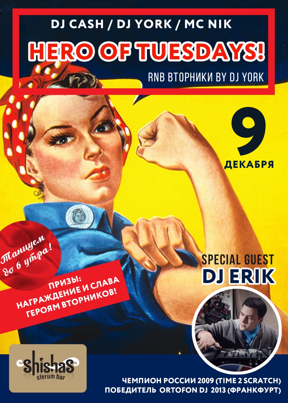ВТОРНИК – ЛЕГЕНДАРНЫЕ R’N’B ВТОРНИКИ by DJ YORK в Shishas Sferum Bar! SPECIAL GUEST: DJ ERIK! Осень – сезон безбашенных вечеринок, которые можно и нужно устраивать каждый вечер и не только по выходным! Пора волнующих романтичных закатов и очень скорых рассветов, которые особенно приятно встречать вместе с друзьями и любимыми под упругие ритмы качественной музыки и с ледяным коктейлем в руке! Не теряя мимолетного осеннего времени, мы запускаем старые добрые ЛЕГЕНДАРНЫЕ R’N’B ВТОРНИКИ by DJ YORK!